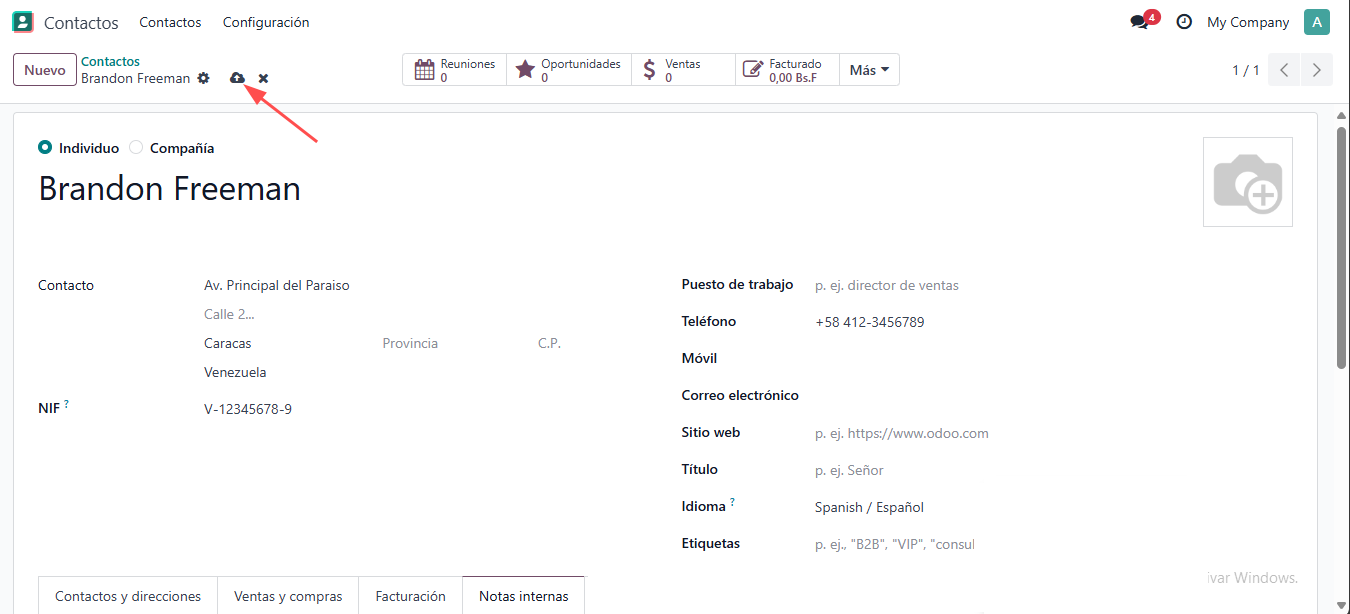 ¡Felicidades! Tu nuevo contacto ha sido creado y ahora forma parte de tu base de datos en Odoo, listo para ser utilizado en tus operaciones de ventas, compras, proyectos y más.